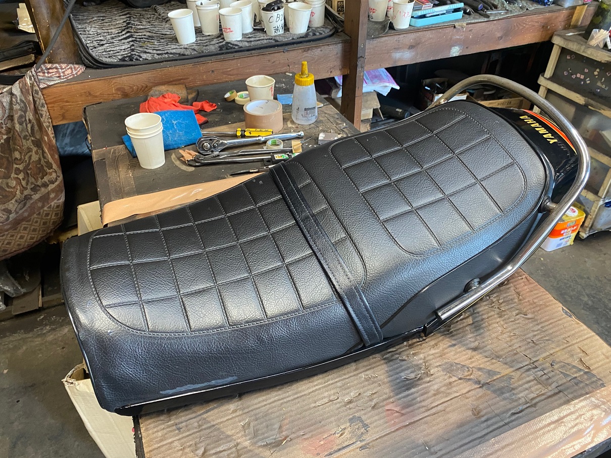 YAMAHA(ヤマハ)TX650初期型シート表皮リメーク塗膜再生処理!