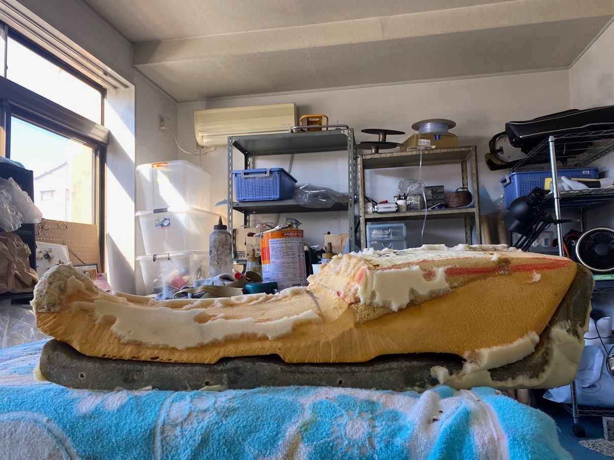 YAMAHA(ヤマハ)XS1Eスポンジ全交換、ベース修理再生(ボルト中折れ、腐食に対応)表皮はやれ感重視してクリアーのみ!