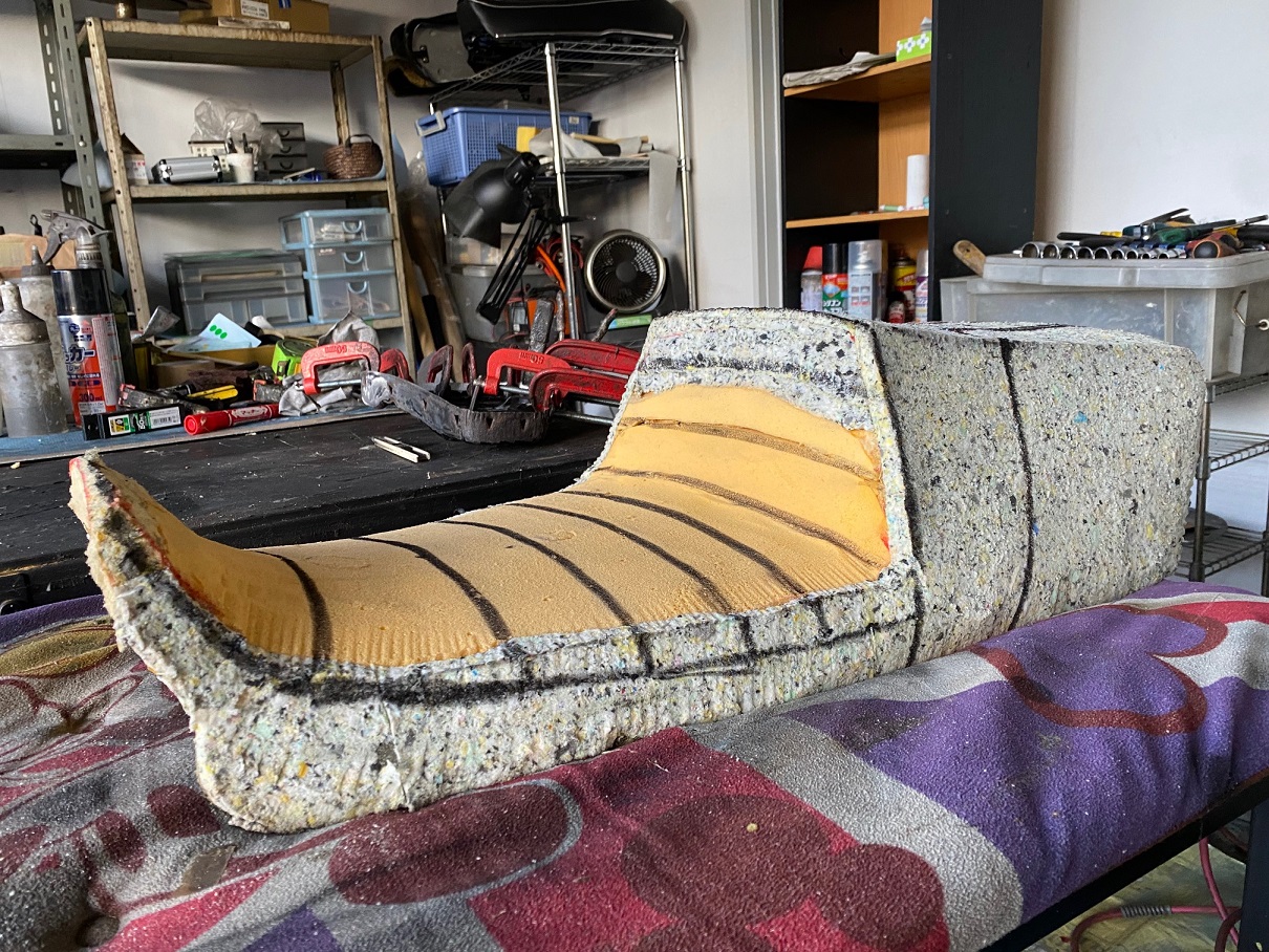 YAMAHA(ヤマハ)XS1Eスポンジ全交換、ベース修理再生(ボルト中折れ、腐食に対応)表皮はやれ感重視してクリアーのみ!