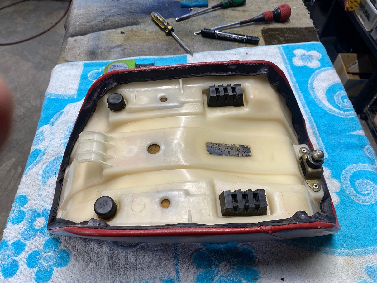 YAMAHA(ヤマハ)XS1Eスポンジ全交換、ベース修理再生(ボルト中折れ、腐食に対応)表皮はやれ感重視してクリアーのみ!