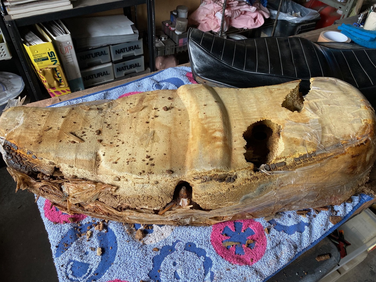 YAMAHA(ヤマハ)TX650初期型シート表皮リメーク塗膜再生処理!