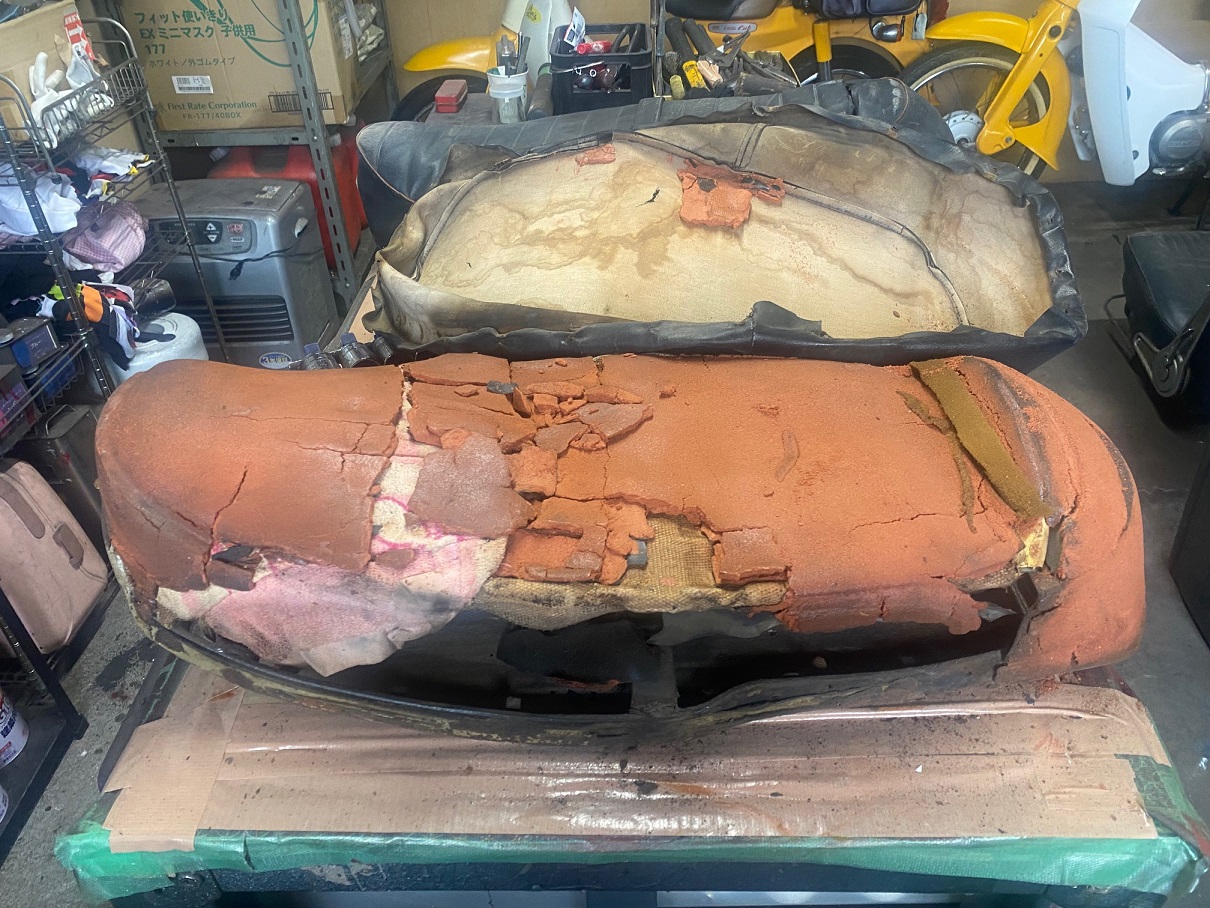 HONDA(ホンダ)CB72シートスポンジ交換及び表皮張替にてリメーク!