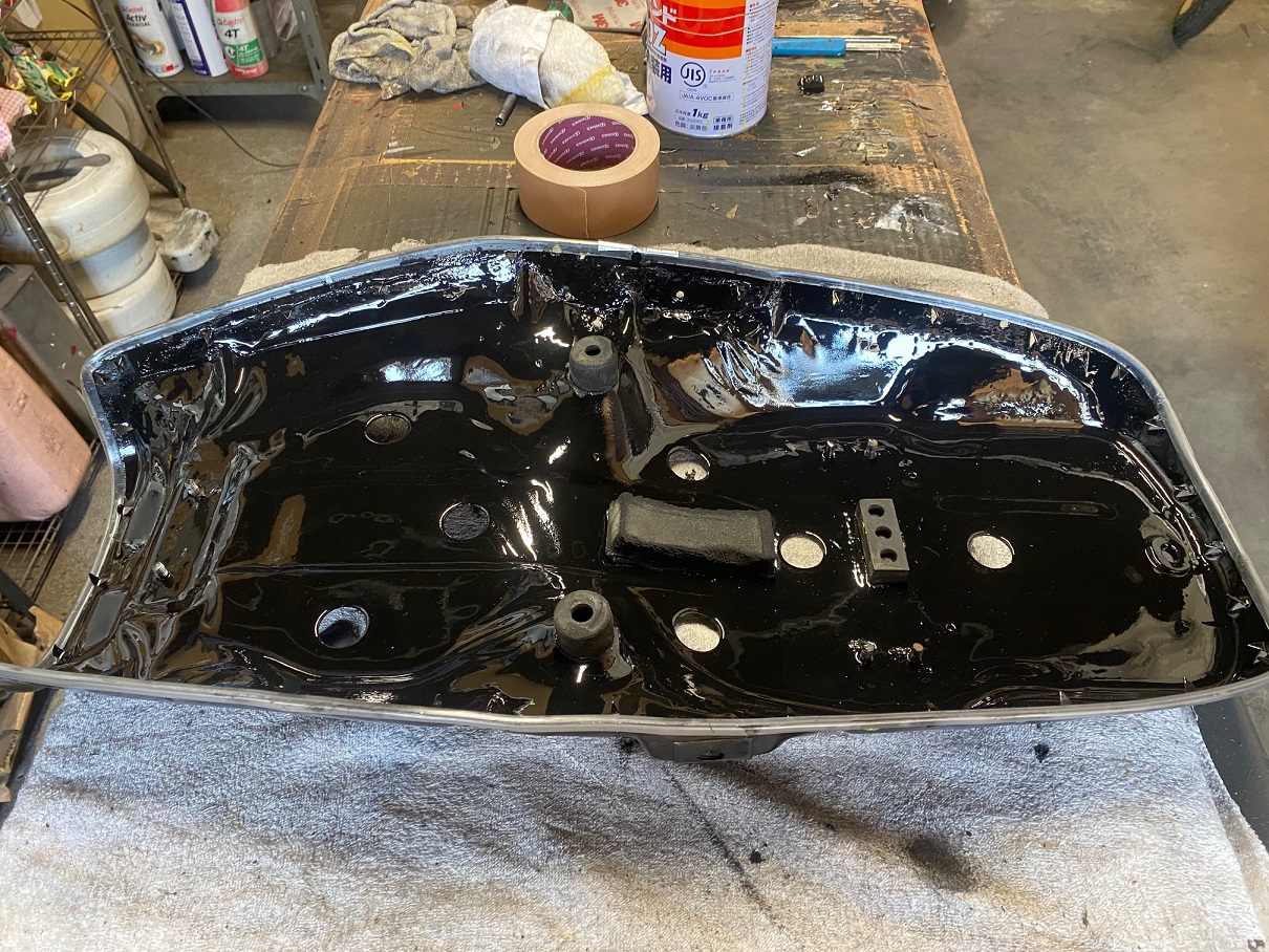 YAMAHA(ヤマハ)XS1Eスポンジ全交換、ベース修理再生(ボルト中折れ、腐食に対応)表皮はやれ感重視してクリアーのみ!