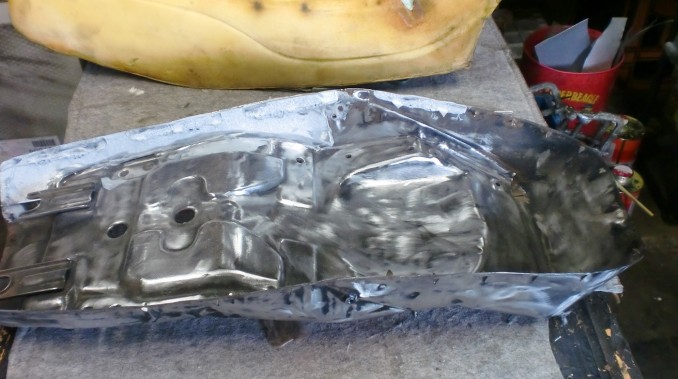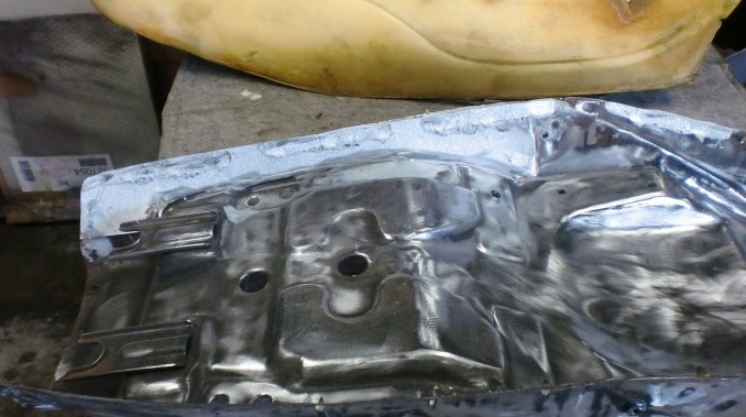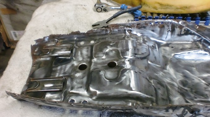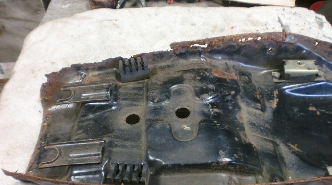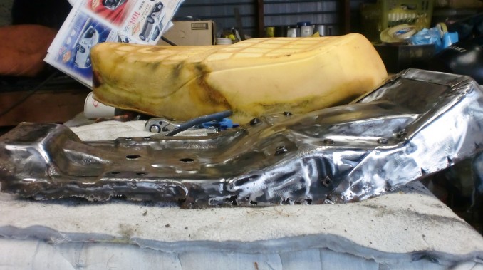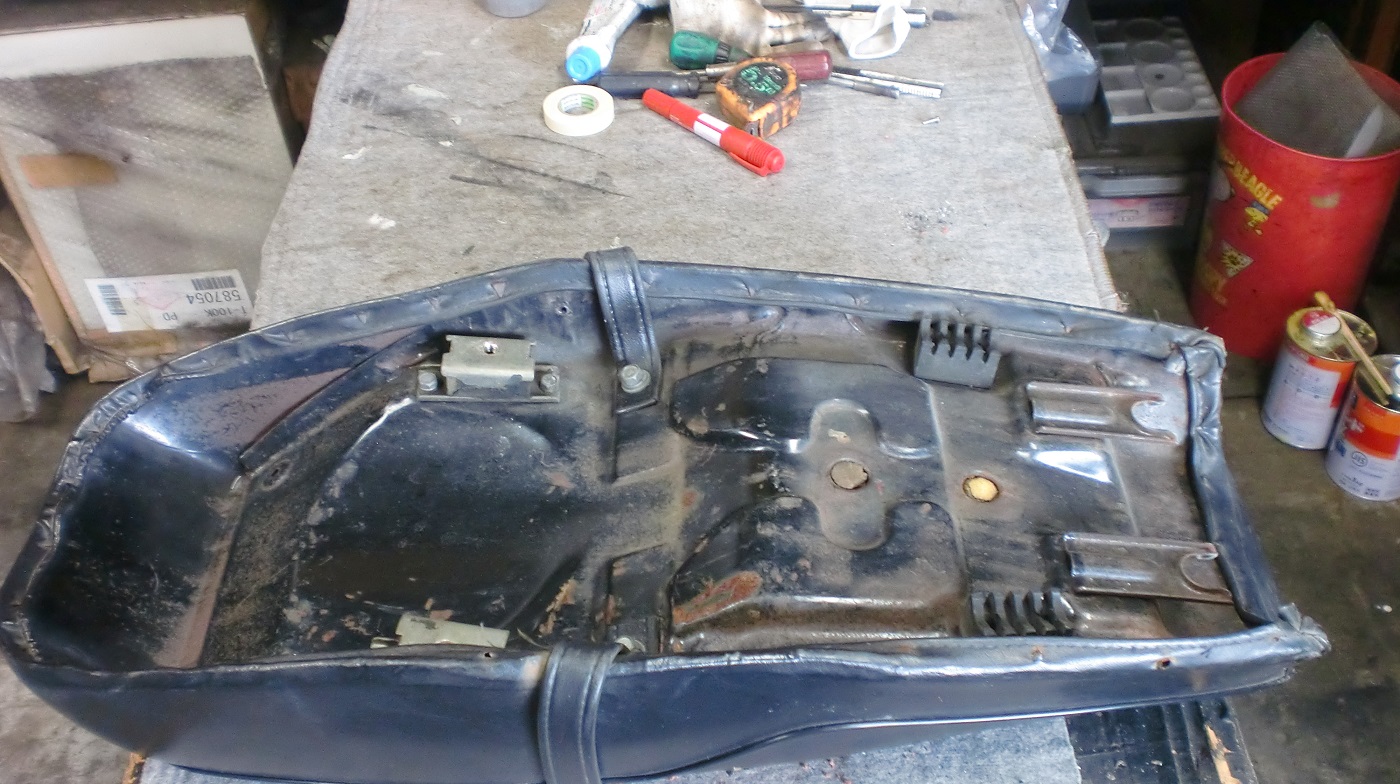 ベースは画像のように腐食修理を施しました、スポンジは表皮のタワミを軽減するため一部スポンジの入れ替えです。 メインの表皮については今回非常に手強かったように思います。 テンションの掛かるシートですから割れなどおこさぬよういつも以上に樹脂材塗布、注入など表皮下地処理を入念にさせていただきました。