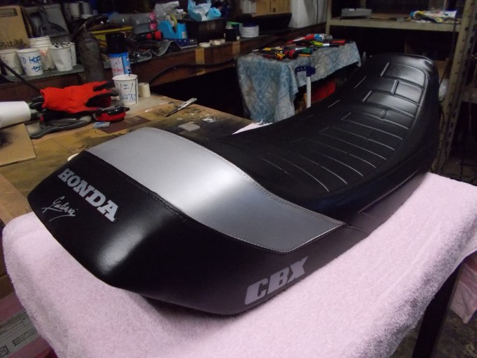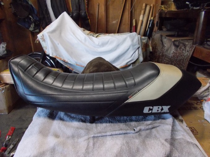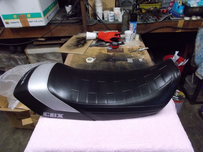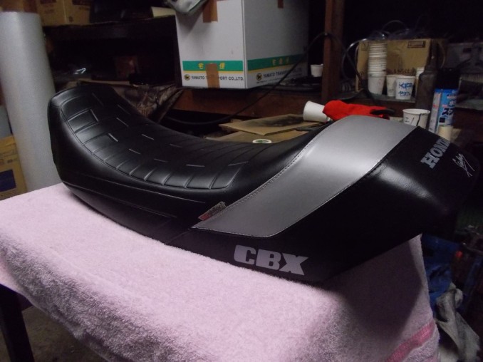 香川県在住オーナーさんよりHONDA(ホンダ)CBX400Fジュリアーリシート表皮リメーク、新色シルバーにて再生!