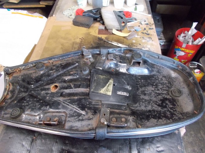 神奈川県在住オーナーさんよりYAMAHA(ヤマハ)TX650シートフルレストア!(ベース腐食修理、スポンジ作製、表皮破れ補強修理及び塗膜再生処理)