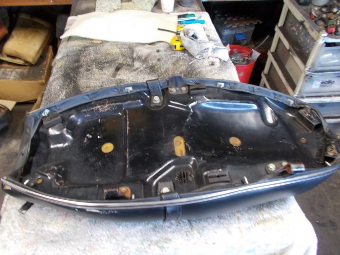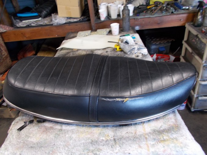 YAMAHA(ヤマハ)XS650Eシート表皮破れ補強修理再生、表皮に少々硬化が見受けられました!