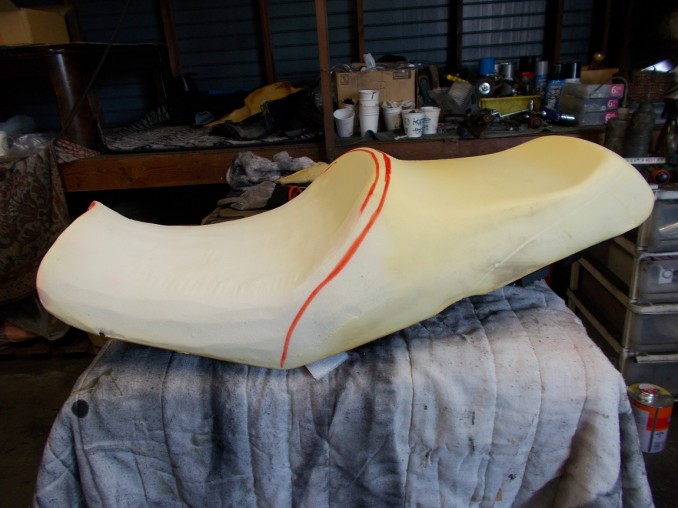 KAWASAKI(カワサキ)シートスポンジアンコ抜き加工後表皮張替にてリメーク!
