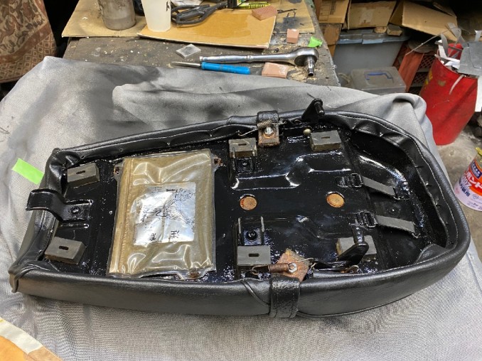 KAWASAKI(カワサキ)KM90シートベース腐食再生修理、表皮はオーナーさんより支給