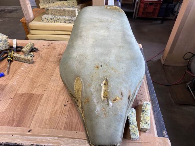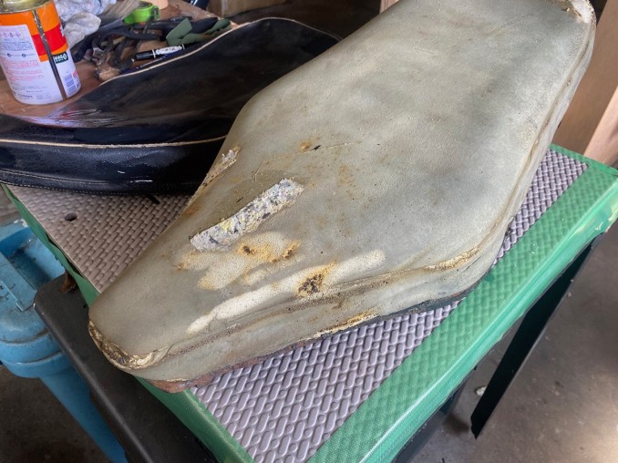 KAWASAKI(カワサキ)Z1カスタムシートスポンジアンコ加工及び表皮リメーク再生!