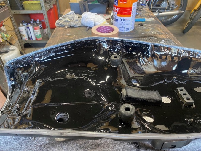 YAMAHA(ヤマハ)XS1Eスポンジ全交換、ベース修理再生(ボルト中折れ、腐食に対応)表皮はやれ感重視してクリアーのみ!