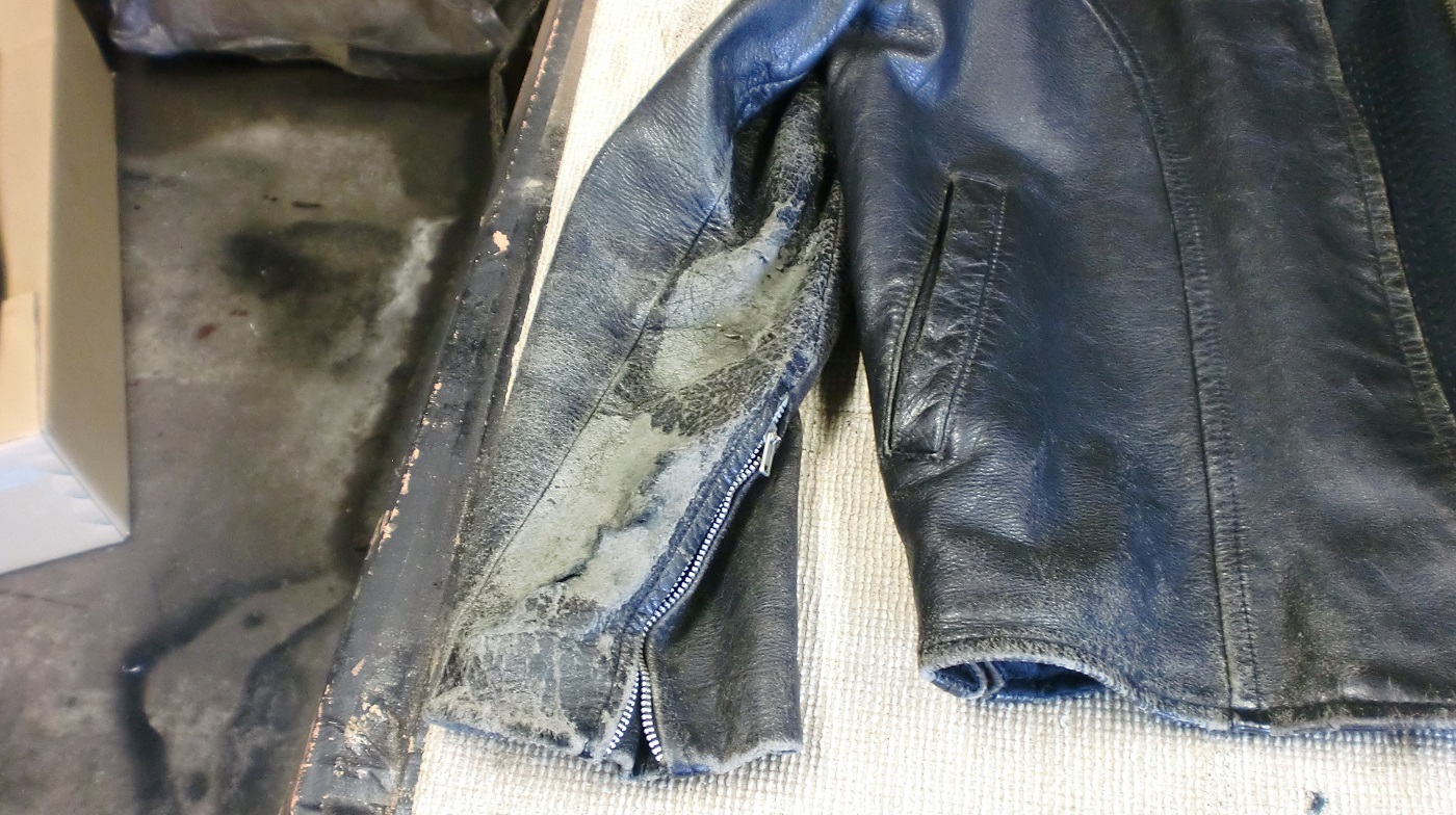 ラーダースレザージャケット、パンツ傷、擦れ、破れ修復に対応させていただきました!